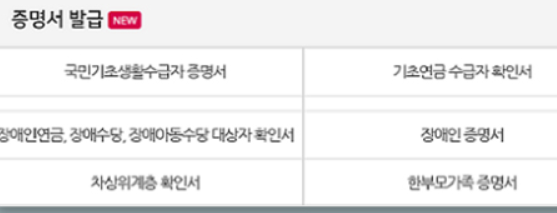 # 복지로 사이트에서 온라인 발급받을 수 있는 증명서