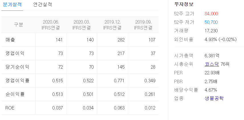 바이오 테마군에서 유독 이슈와 테마로 인한 영향을 적게 받는 기업이라 생각합니다. 크게 주목받지 못했지만 어쩌면 이런 기업이 알짜베기일 수도 있다는 개인적인 소견입니다.