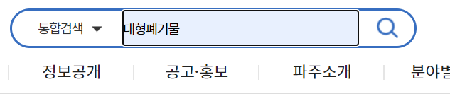그리고 지역마다 대형폐기물 정보 위치가 조금씩 다르기 때문에 어떤 구청 홈페이지에서도 찾는 방법을 알려드립니다. 구청 홈페이지에 접속하시면 모든 홈페이지에 검색창이 있습니다.
