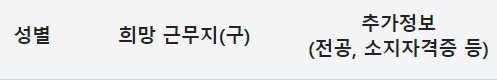 구직 등록정보를 클릭하시면 위와 같이 구직을 원하는 사람이 등록한 구직자의 정보가 나옵니다. 원하는 직종과 성별, 희만 근무지, 자격증 정보가 나옵니다.