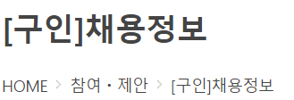 가장 상단에 있는 목록에서 참여, 제안을 클릭하시면 왼편 제안방 밑으로 구인구직 게시판에 대한 항목이 나옵니다. 이 항목에서 구인을 하려면 채용정보를 들어가시면 됩니다. 그리고 구직을 하시려면 등록정보를 보시고 원하는 정보를 검색하시면 됩니다.