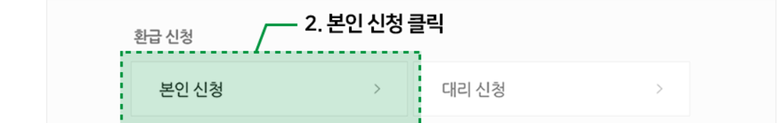 사이트에 환급신청 란의 본인 신청을 클릭합니다.