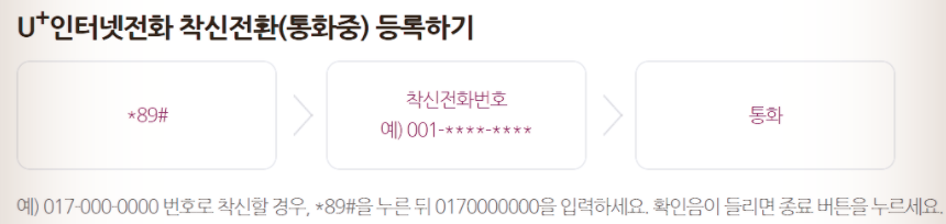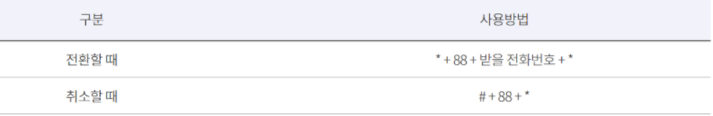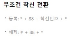 - 전화 착신전환 방법 : *88 착신번호* > 통화