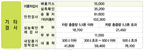 자동차를 검사하면 수수료가 발생합니다. 검사에 대한 수수료를 알아보겠습니다. 수수료는 차량의 크기에 따라 그리고 검사의 종류에 따라 가격이 차이가 납니다.
