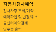 - 정기검사 : 자동차등록증, 보험 가입증명서