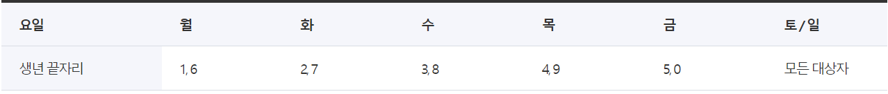 교통비를 신청하기 위해서는 본인 또는 부모, 세대주에 따라 날짜가 다릅니다. 그리고 요일제를 적용하기 때문에 주민등록 끝자리의 요일에 맞게 신청하시기 바랍니다.