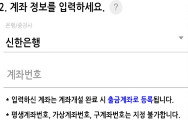 - 은행 계좌를 선택하고 신분증을 촬영하여 개인 신분 확인을 하시면 됩니다.