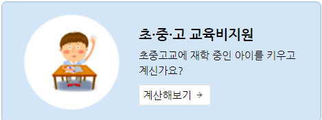 나온 항목에서 차상위계층 모의계산을 위해서는 국민 기초생활보장 계산해 보기를 누르시면 됩니다.