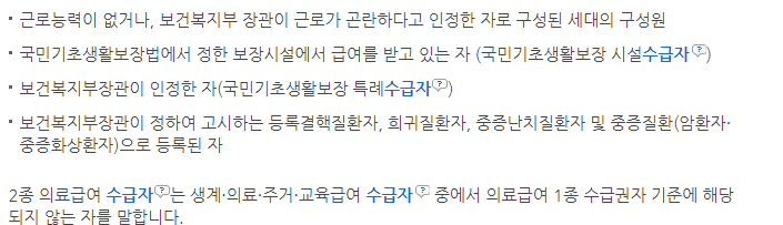 정부에서는 최소한의 생계비가 꼭 필요한 국민을 위해 정부 지원 정책으로 차상위계층에 대한 지원을 하고 있습니다. 실질적으로 생계유지가 어려운 분들을 위하여 수급자 범위를 벗어난 분들에게 지원을 하고 있습니다.