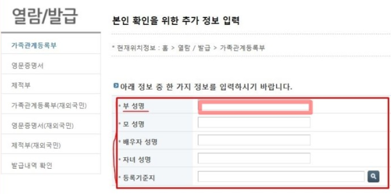 # 가족관계 증명서 인터넷 발급