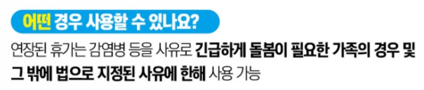 • 조부모, 부모, 배우자, 배우자의 부모, 자녀, 손자녀가 코로나 19 관련 사항으로 긴급하게 돌봄이 필요한 경우