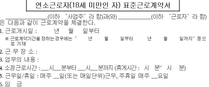 • 연소근로자(18 미만인 ) 표준근로계약서
