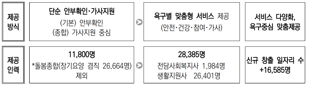 노인맞춤 돌봄 서비스 생활지원사 인원은 점점 늘고 있습니다. 정부에서 늘어나는 노령자에 대해 복지 정책이 늘고 있고 신규 일자리 창출도 되기 때문에 앞으로 점점 시장은 커질것이라 생각하고 있습니다.