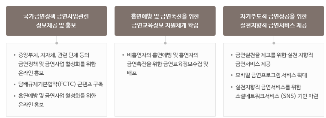 요즘은 웹 서비스로 금연에 대한 서비스를 하고 있어서 일반인들과 바쁜 직장인들이 접근하기 너무 좋습니다. 금연길라잡이라 칭하고 국민을 대상으로 인터넷 상담을 진행하며 흡연 예방 금연 실천에 도움이 됩니다.